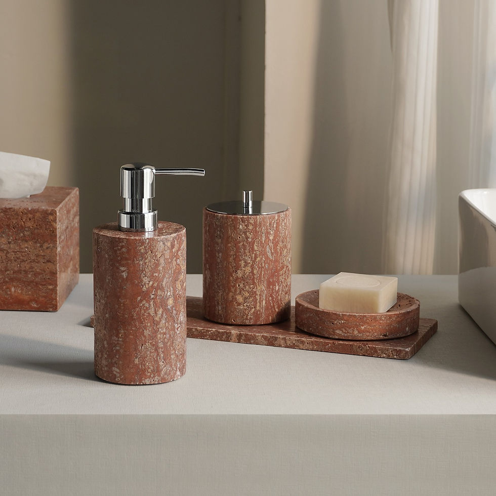 Стильные аксессуары из натурального мрамора в расцветке ONYX станут настоящим украшением вашей ванной комнаты.